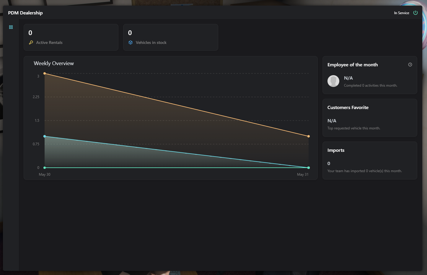 > In this tab, you can see a summary of your dealership's activity.