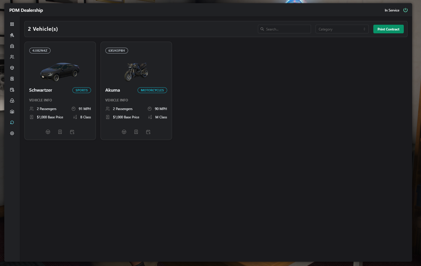 * If `Config.MetadataInventory = true`  the script will give you the item contract, you can use it close to another player vehicle to make an offer to buy.