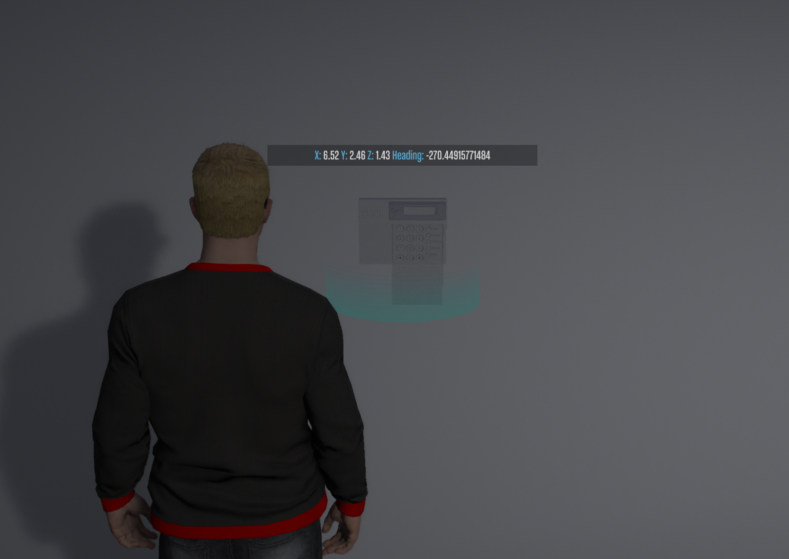 **6)** Use the command /testobject to spawn the alarm prop and grab the needed coords, like this: