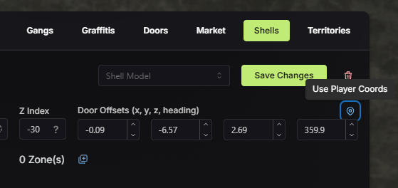 * Now you can click the Door Icon (Teleport to shell) to test the door coords.