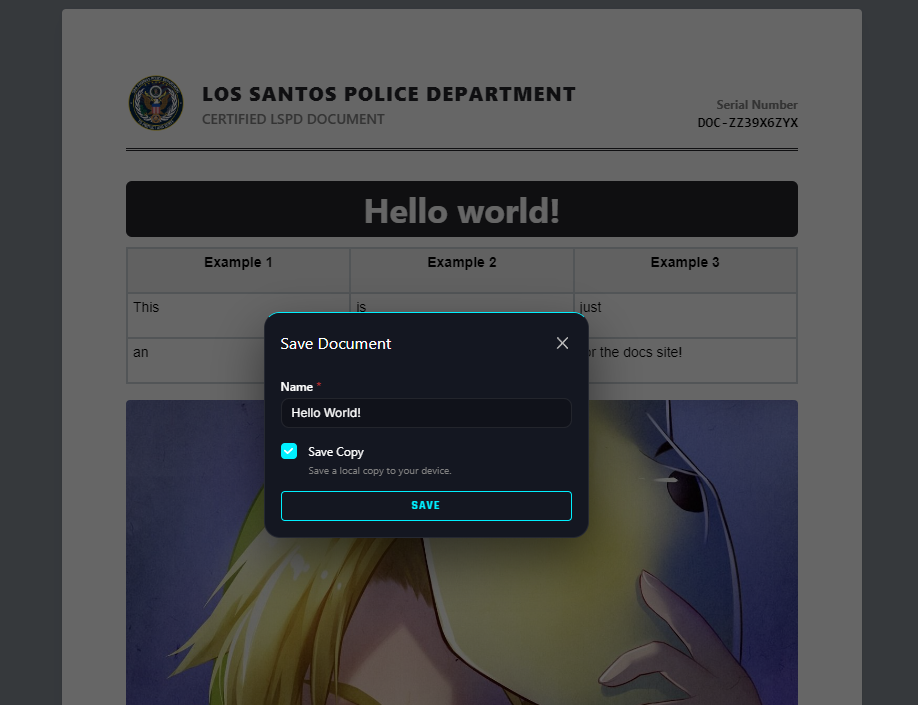 You can save documents as Templates, which is ideal for creating standardized frameworks—such as contracts—that can be populated with different information as needed. Templates can be shared with other players for their own use. Please note that Certifications are not shared; only authorized personnel can apply an official certificate to a document.