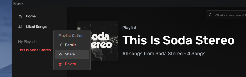 Right click on the Playlist you want to share and click in Share option