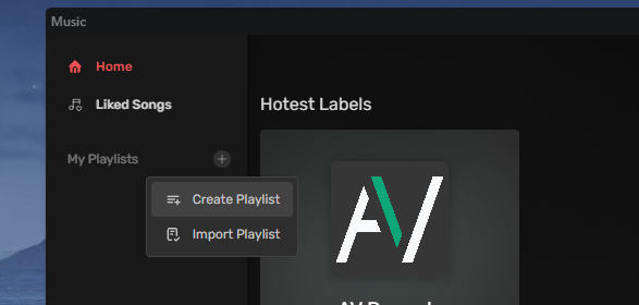 In the navbar click the "+" icon to open the menu and select Create Playlist.